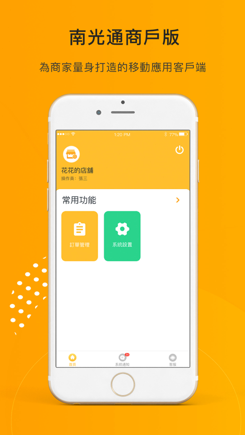 南光通商户能够帮助用户们快速处理店铺订单,为客户提供最优质的服务,还可以查看店铺的收益情况,线上发布各种店铺活动,非常方便,如果这款软件能够对你有所帮助,快来下载试一试吧!