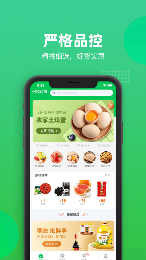 米袋商城是全新的线上购物软件,能够给用户带来优质实惠的商品,商品包括粮油米面、安心果蔬、肉禽蛋类、南北干货、健康杂粮等品类,是办公室白领和年轻一族的首选食品网络购物网站。