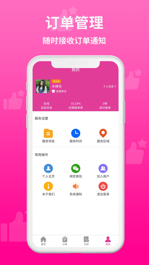 想爱摩技师端致力于为技师提升线上接单能力和处理订单的能力,使用想按摩技师端你可以实时定位不用坐班,在线接单。