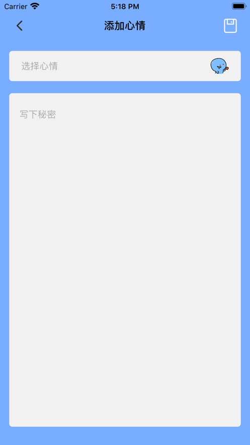 需要写一个字的心情微日记应用,用不同10种不同表情来快速记录此刻心情。