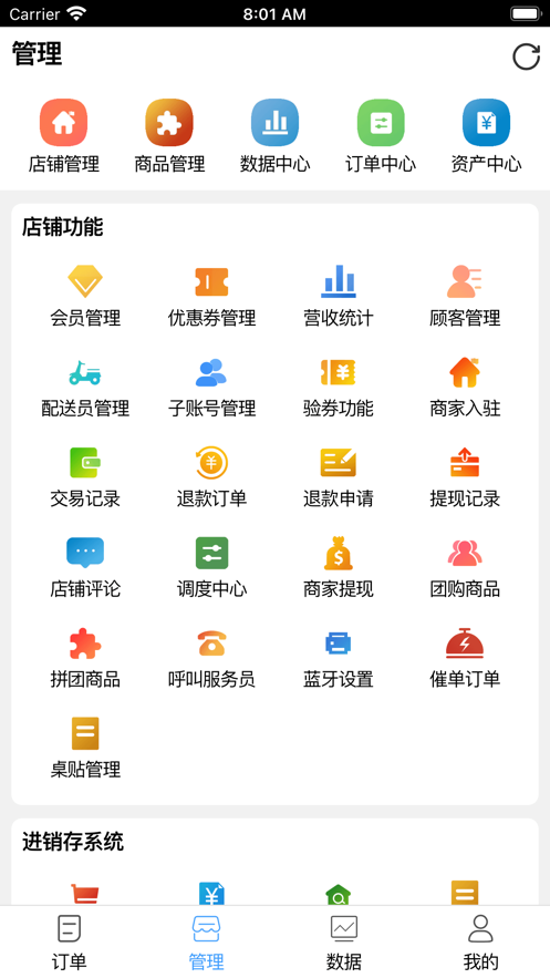 管理商家店铺商品、订单