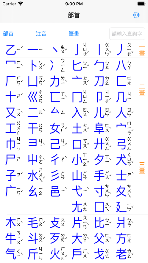 2、拼音和部首可以按首字母和部首笔画数过滤.