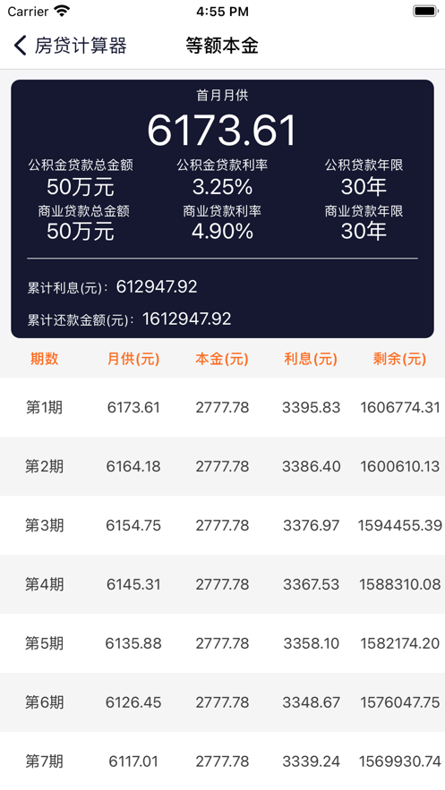 2、特有“提早还款”计较功能,可查询预期还款后的转变环境
