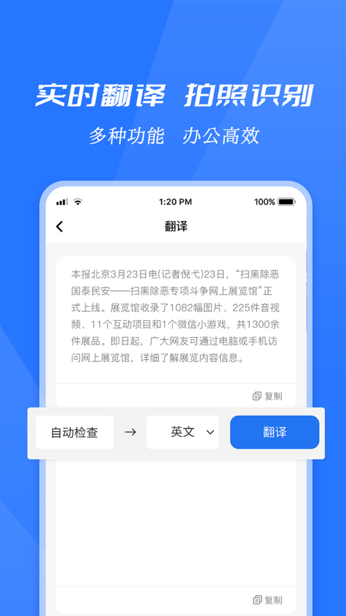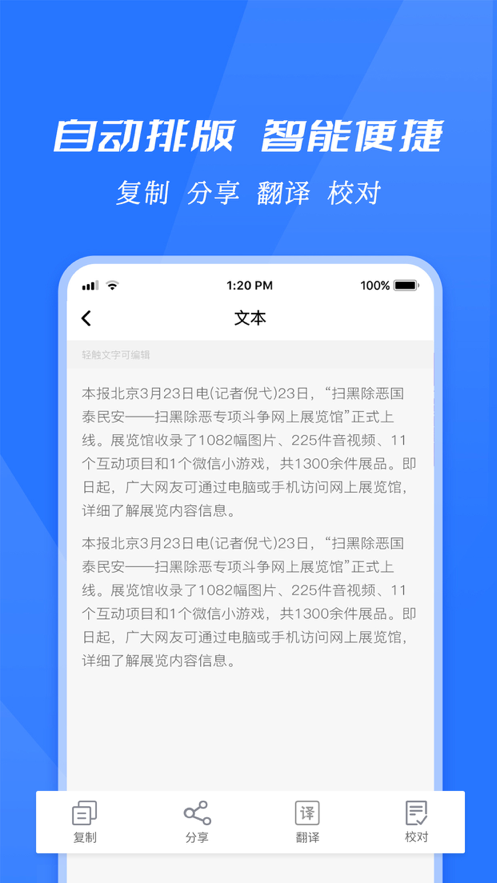 文字辨认后可以一键复制辨认出来的文字