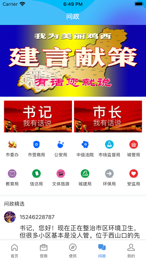 掌悦鸡西app汇集了极为全面的各类便利服务,包括了像是外卖,跑腿,商城等等功能,可以为用户的日常生活带来极大的便利。平台拥有首页,营商,便民,问政等内容板块,可以帮助更好的引导及服务鸡西。