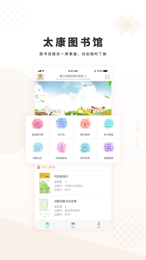 太康图书馆整合了极为丰富的图书资源,全部免费提供的,小伙伴们可以随时线上阅读自己心仪的图书,畅享图书带来的乐趣,对这款软件感兴趣的朋友们快来下载试一试吧!