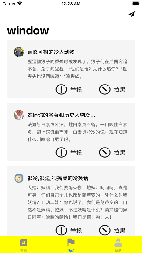 原创段子内涵图、搞笑 GIF 短视频、聊天套路表情包; 每天海量内容更新,全网的笑点都在鱿鱼搞笑app这儿!