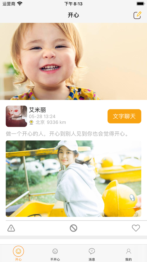 分享心情啊APP是一款极为优秀的心情记录软件,在这里你能够很好的分享自己的各种心情故事,也可以体会别人的喜悦和悲伤。本软件还具有独特的纯文字聊天功能,用文字来表达你的心情。希望广大用户,以真心换真心,文明交流。