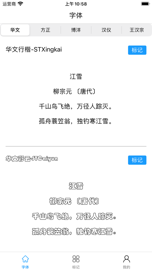用户们可以通过手机字体APP选择自己心仪的字体使用,所有的字体都是免费提供给小伙伴们的,并且字体种类非常多,对这款软件感兴趣的朋友们快来下载试一试吧!