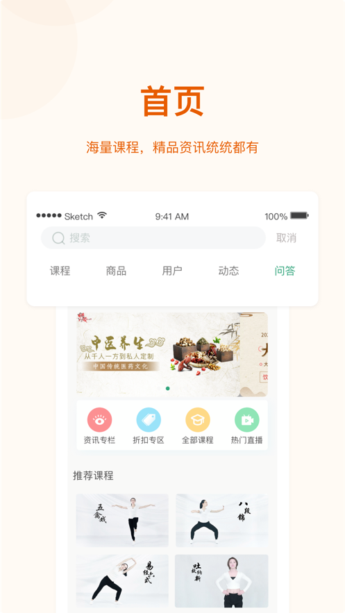 2、大量免费线上学习课程,提供轻松学习的优质内容,课程包含了健康养生、乐器学习、生活艺术、舞蹈形体等专业线上课程