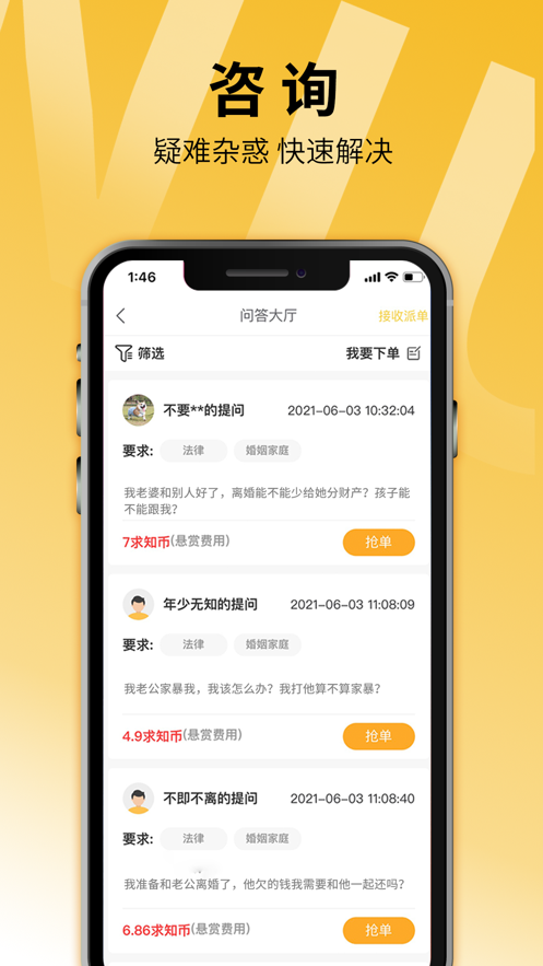 【实时咨询】线上即时发单询问,秒级响应,您的法律问题急速得到专业律师意见