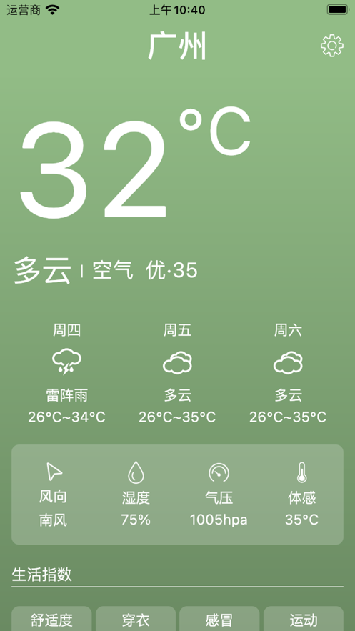 2、在软件中可以看到实时的气温和天气信息,了解未来详细的天气变化动态,提早做好防范措施