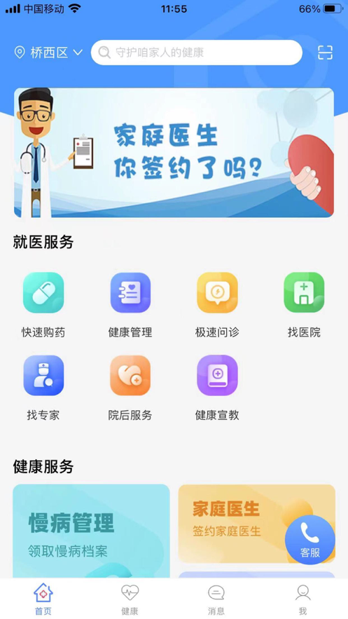 河北居民健康app公众段以移动互联网终端为载体,面向居民提供基本在线咨询、慢病签约、家庭医生签约、个人健康档案查询、在线商城购买等功能,最大程度上方便了用户使用,为实现高效、便捷、优质得医疗服务创造条件。