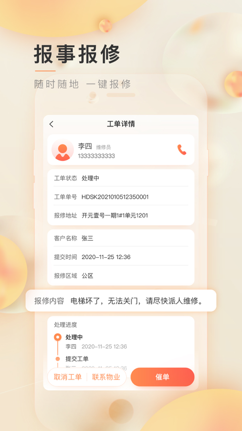 浩德e家APP能够让用户实时了解居民的各种请求,然后针对目前的工作方式进行合理地更改,也可以查看社区的公共设施并及时保养维修,致力于为社区居民带来极为舒适的生活环境,也为自己的物业工作带来了极大的便捷。
