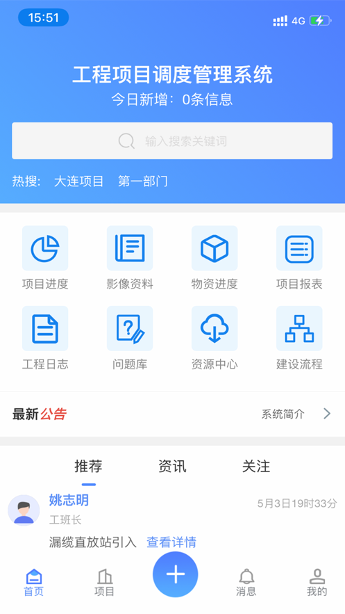 利用工程项目调度管理系统APP能够查看项目的详细信息,监督项目的完成情况,有任何问题都可以及时知晓并解决,能够线上汇报项目的完成进度,线上进行工作交流,如果这款软件能够对你带来帮助,快来下载试一试吧!