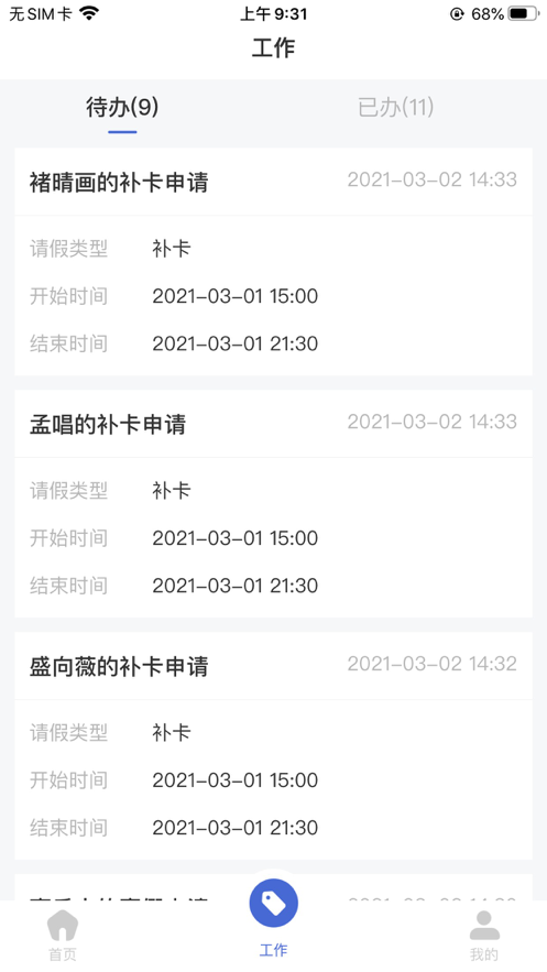 2、直接在此登记外出,外勤、出差以及请假等申请能够在此发起