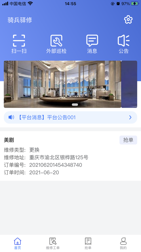 利用骑兵驿修APP能够为用户们的社区生活带来极大的便捷,只需一部手机即可完成物业缴费,线上投诉,物业信息查询等等,如果这款软件能够对你有所帮助,赶紧下载试一试吧!