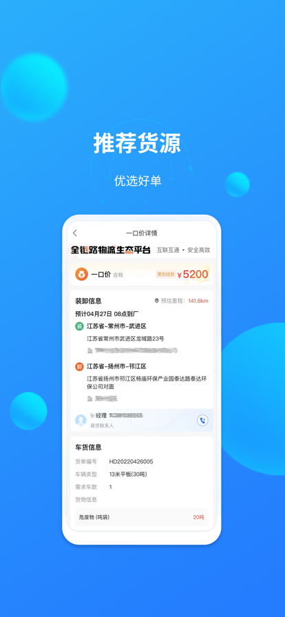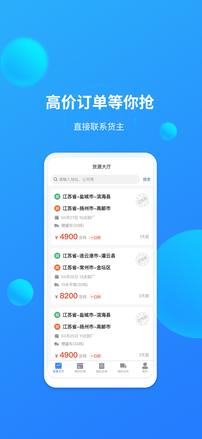 相比于其他物流APP来说,有着更多更稳定的订单以及货源渠道可以选择,平台还会根据自身所在的位置来发布最适合用户的消息,从而保证用户能够顺利下单或者接单。