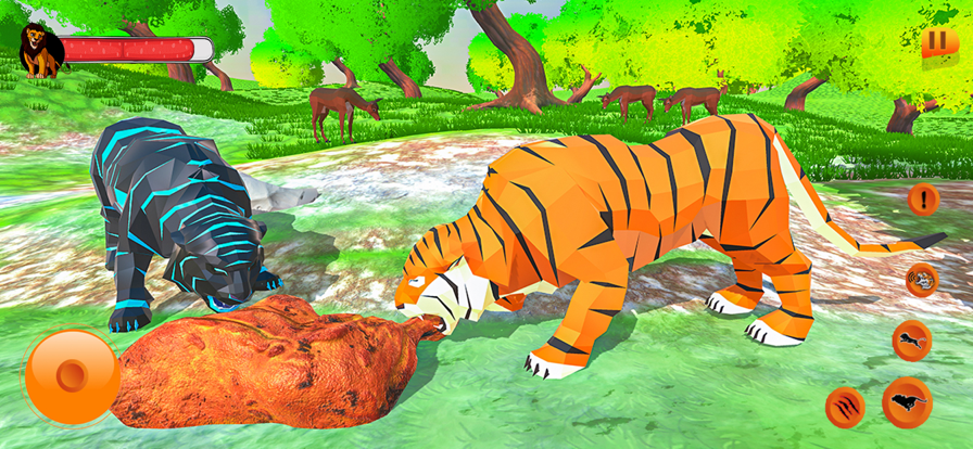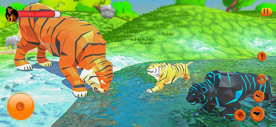 在老虎模拟器的游戏中玩家将会以老虎的身份来体验不一样的丛林世界,我们需要通过狩猎来获得自己所需要的食物,并且在这个丛林中 还有着其他肉食性动物作为我们敌人,所以我们必须时刻小心着来着其他动物的攻击。在游戏中还有着多种不同的老虎可以进行选择,每一只老虎除去外形不同以外,还有着不一样的特性技能可以让玩家尝试。
