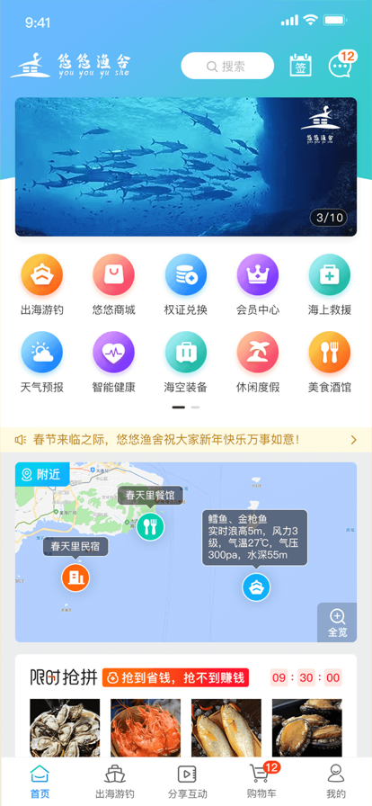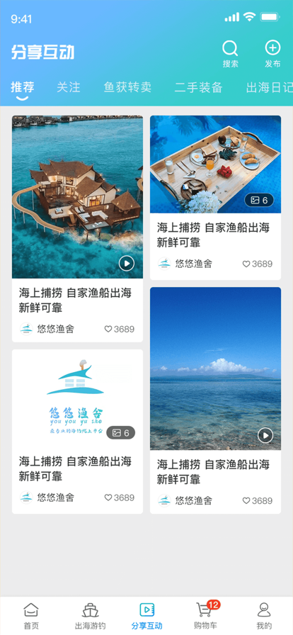 悠悠渔舍是一个围绕海洋消费为主题的平台,在这个软件中的主要用户圈子就是海钓爱好者,平台为用户们提供了各种详细的海钓信息,为包括周围的海域天气、出海时机以及相关政策等等,另外还能够让各个专业人士在平台进行互动交流,彼此学习对方的技巧,不断的提升自己海钓的技术。