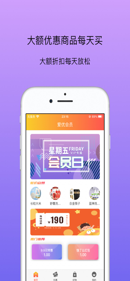 大神会员的软件中有着各类低价折扣商品可以让用户进行购买,并且每天都会更新不同种类的优惠活动,我们可以根据自己的感兴趣的方面来进行挑选。此外,不论是想看视频,还是想听音乐,在这款软件中都能够购买的对应的产品内容,而且价格都是远低于官方价格,能够让我们以更加实惠的价格享受到各种服务。