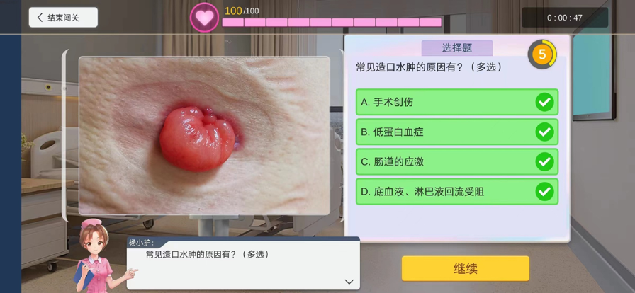 软件以游戏的方式来教学各种护理的常用医学知识,将原本乏味的学习内容变得更加的生动,加大的学生学习的兴趣,从而起到更好的学习效果。