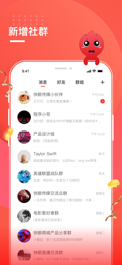 快眼传媒主要是以社交信息为媒介的一个传媒平台软件,在这个软件中用户能够以商家入驻的形式来展示自己的产品,并且通过不同的营销方式来提升自己的人气,软件还开放了直播以及社群的玩法射击,确保商家用户能够以更多的选择来进行产品或者企业的展示,充分的降低了宣传的成本费用。