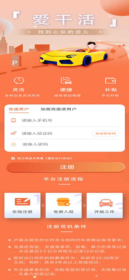 爱干活能够给消费者提供更加专业便捷的租车业务体验,软件能够通过定位用户的位置信息来提供附近最近的租车服务点,并且根据用户 的用车需求来筛选掉不需要的部分,并且在用户使用完车之后还能提供异地还车服务,让用户在使用的时候能够有着更加灵活且舒适的租车体验。有租车需求的小伙伴千万不能错过这个软件哦!