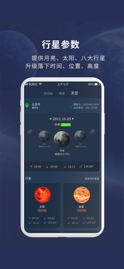 3.免费提供毫秒级月亮、太阳、八大行星升级落下时间、位置、高度