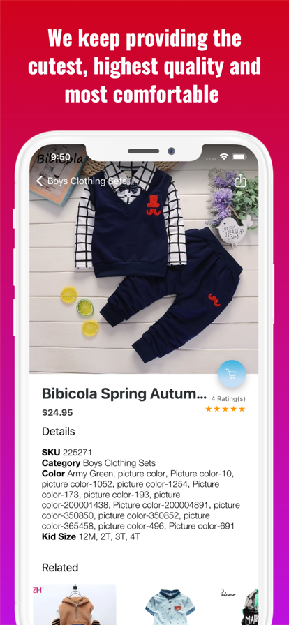 相信很多孩子妈妈都非常喜欢给自己的宝贝购买各种可爱帅气的衣服,毕竟女人的购物欲在成为母亲这个角色之后,就会开始转接到孩子的身上。而这款便宜的童装店就是一款非常不错的童装购买软件,在这个之中,你可以找到各种不同的类型的童装款式,并且以非常实惠 的价格拿到手,是宝妈的明智之选。