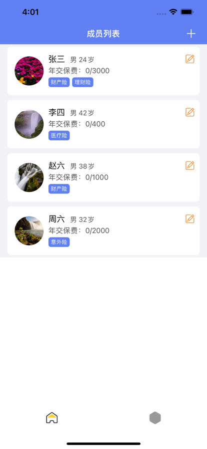 保险员的好帮手,能够根据用户的需求来记录客户的相关信息,并且生成对应的饼妆数据图来帮助用户更加直观的了解用户情况。