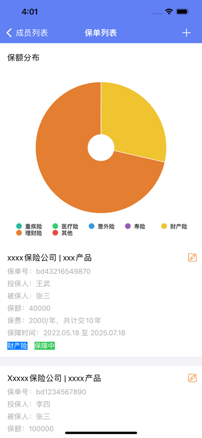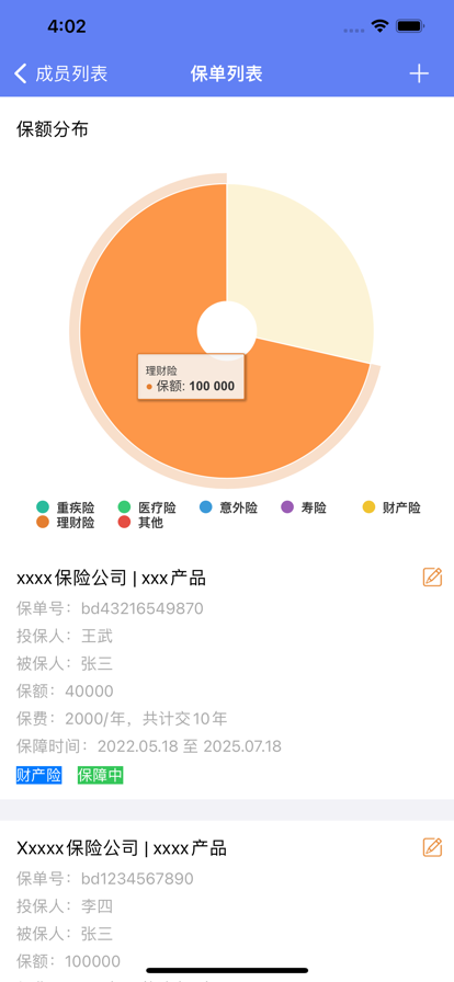 *通过软件随时都可以去查,看到你的保险产品的分布情况,做到一目了然。