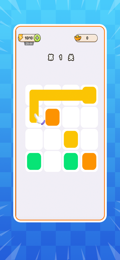 管道拼一拼是一款玩法非常简单的休闲益智类手游,在游戏中我们需要将相同颜色的管道全都连接在一起就算是通关,不过要注意的是已经被使用过的格子是不能在连通管道的,所以我们需要谨慎考虑管道的走向,以此来确保所有的颜色最后都能顺利联通,随着关卡的进程推进,游戏的难度也会不断上升,那么最后你到底能够闯到第几关呢?