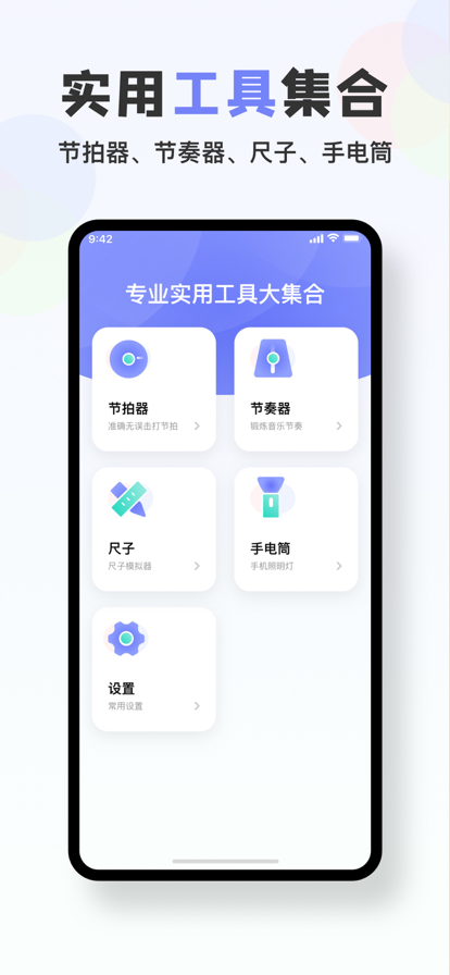 枫湾节拍器工具的软件中提供了各种不同的动感节拍,能够帮助很多音乐初学者更好的锻炼自己的节奏感,并且还能够确保练习的时候不容易进错拍,可以说是音乐人生活中必备的一个小工具,此外,除了节拍器的功能以外,软件还内置有手电筒、尺子等等使用的小工具,总体来说是非常有意思的一个软件。
