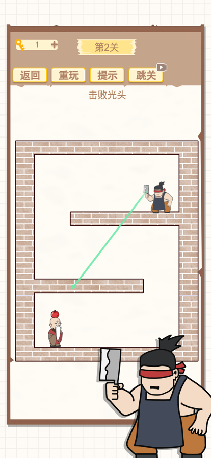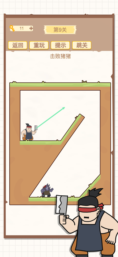 飞刀英雄大师中我们会遇到各种各样的目标人物,其中除去顶着苹果的老头,还有着凶狠的黑猪精。而我们要做的就是将自己手中的菜刀丢出去并且完美的砸中目标就可以过关。所以在丢之前,我们一定要调整好自己的角度,从而确保能够一击致命。游戏整体的设计休闲有趣,很多场面都非常的搞笑。