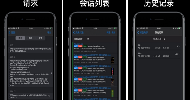 3.点击橙色的任务条,可查看当前的会话,点击会话,可以查看该会话请求和响应