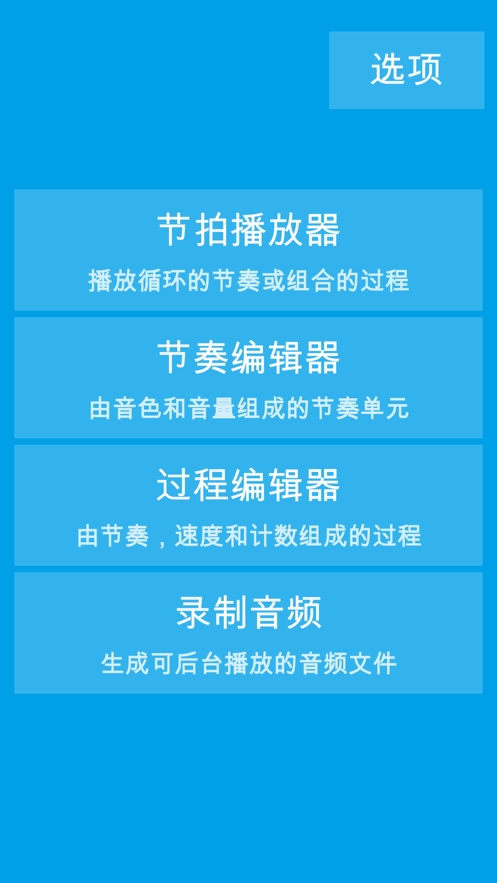 乐器节拍器是一款针对音乐爱好者准备的节拍辅助工具,在安装使用之后,我们能够通过输入各种音乐文件来对节拍进行调整,从而生成我们需要的音乐文件,灵活多样的定制设定,让我们有着更多的一个选择。在节拍样式上我们能够选择不同的表现形式以此来更贴合自己的使用习惯,感兴趣的小伙伴就快来试试吧!