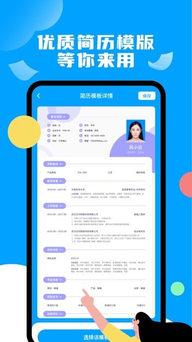 1、一款满足大家在手机上制作简历需要的软件,有超多简历模板。