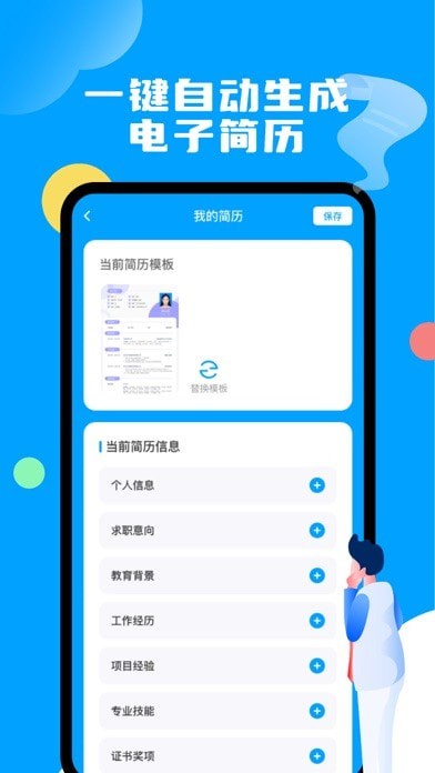 3、轻松的制作出令自己喜欢的手机简历,拥有非常丰富全面的简历素材。