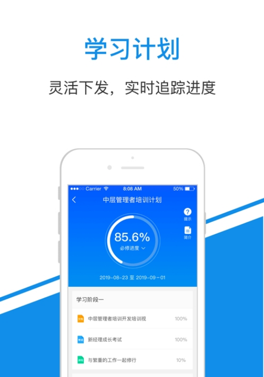 长城汽车e学院苹果版是一个企业培训学习软件,定制自己的学习计划,课程内容都可以通过直播的形式来传递,在线可以模拟考试,不同岗位的学习都能在线查看,提升员工的学习效率,随时可以在线学习,环境都非常的不错,属于个人的学习平台。
