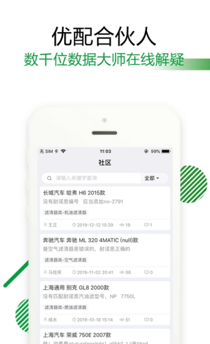 优配合伙人苹果版需要查看什么车型和配件都可以搜索关键字,自己的客户都能高效的管理,获取客户资源都很简单,社区信息都很丰富。