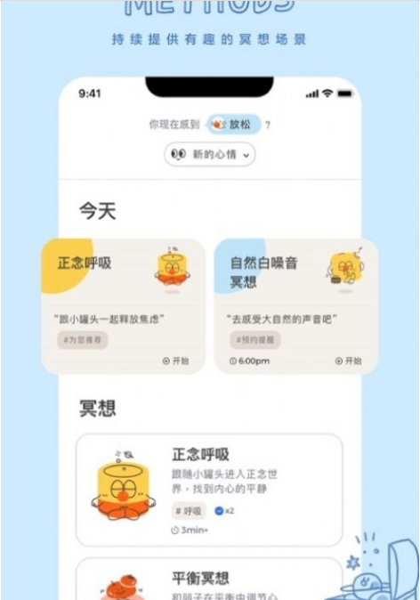 罐头冥想苹果版是一款生活服务软件,里面有很多的降噪服务,在这里可以更好的去放松自己,有什么烦心的事情都可以化解掉,给你一个良好的安静环境,而且里面还有很多的可爱角色可以去选择,玩法也是非常的多,让你的心快速安静下来,有效助眠。