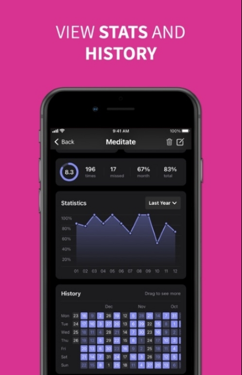 2、在一个美丽、简约的用户界面设计中跟踪你的习惯。