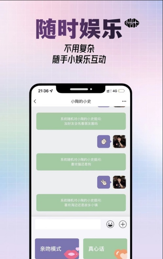 随时娱乐不耽误,不用复杂不用尴尬,随手小娱乐轻松互动,打破彼此的隔阂!