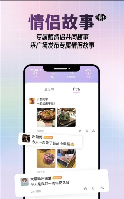 专属晒情侣的共同趣事,来广场发布专属的浪漫故事,收获更多的点赞与祝福;