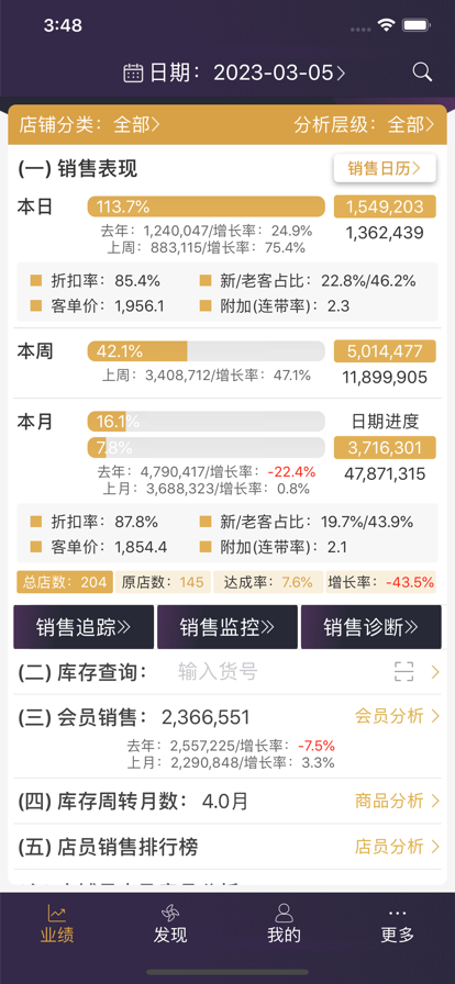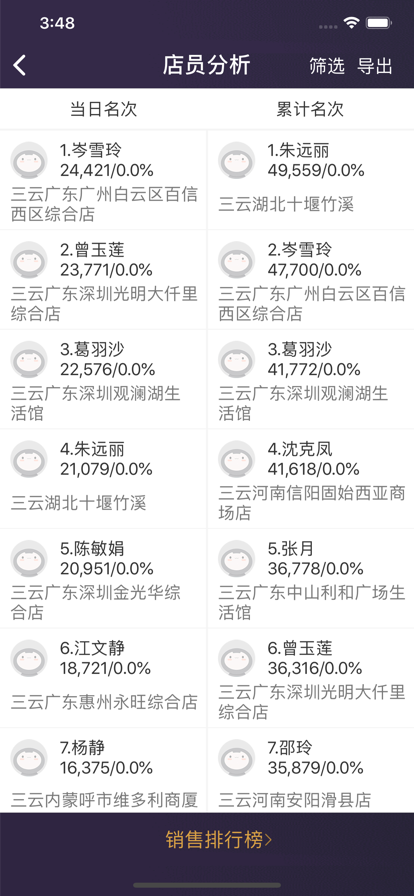 三云零售通苹果版关于店铺的数据都能在这里查看到,数据可以轻松做对比,每月的销售数据都能清晰的知晓,服务很不错,效率高。