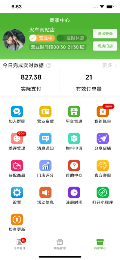 3、提供商登录入口,商店管理店铺更方便,实时统计当天的收入情况。