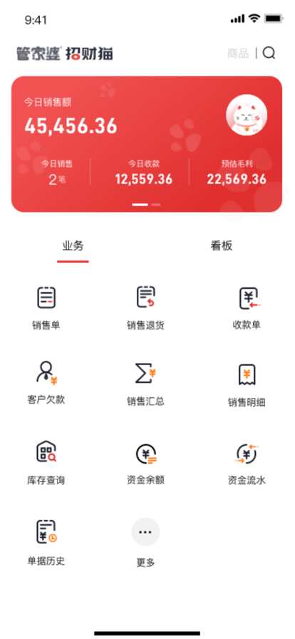 管家婆招财猫苹果版可以让商家更好的管理自己的仓库,商品的信息可以自由去编辑,运营的数据可以在线查看,效率非常的高。