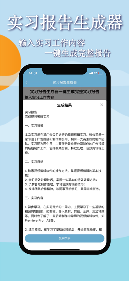 日报周报生成器苹果版很多的文章信息都能快速的生成,输入相关的信息内容就可以生成了,效率非常的好,制作文章都比较的简单。