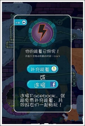 3、连接Facebook,邀请好友和分享游戏,就能免费补充能量。